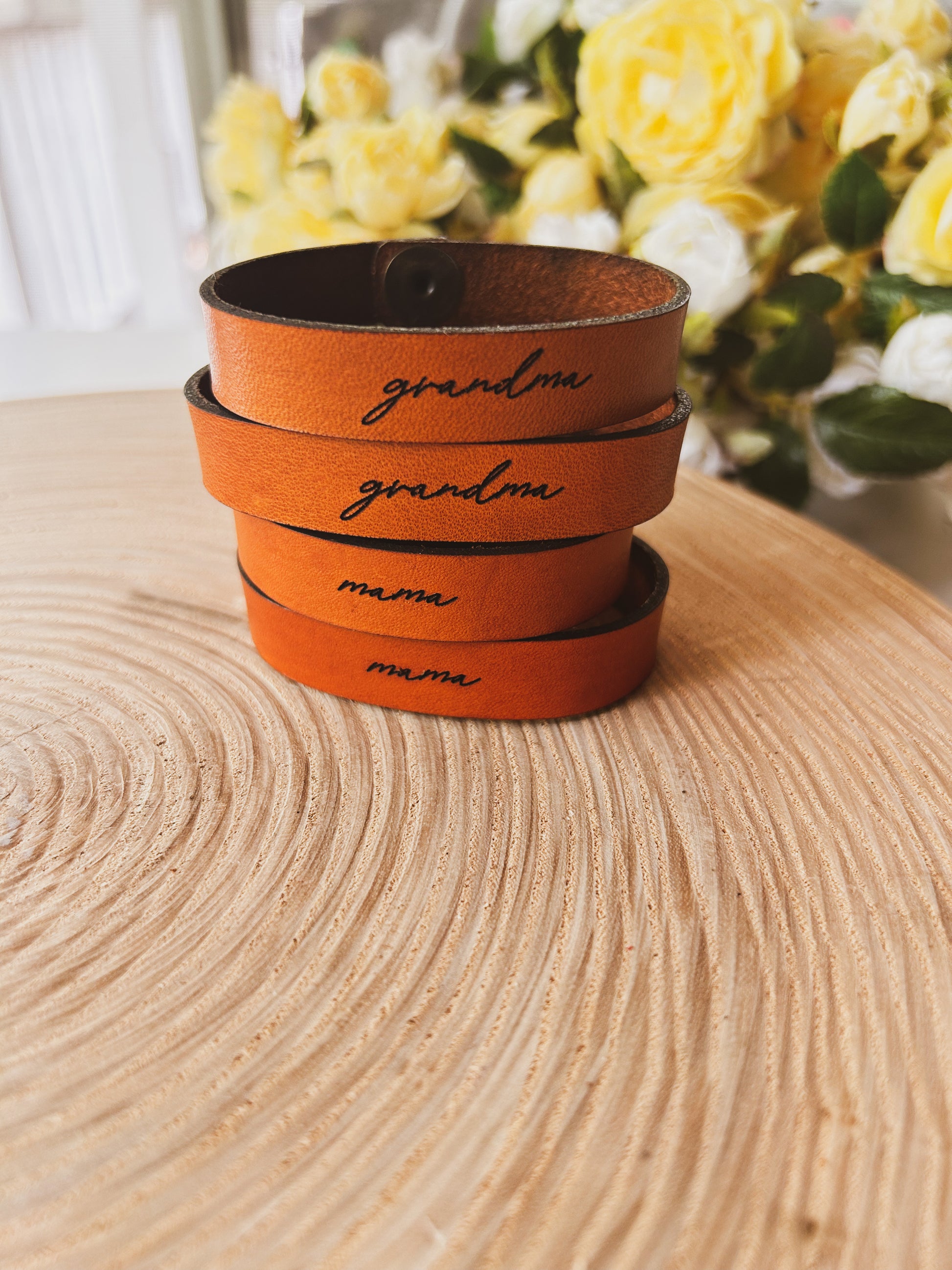 Simple, meaningful, and made to be worn every day. This leather cuff bracelet is engraved with “mama” in a soft script font and hand-dyed in classic saddle tan. Designed in a women’s standard medium size, it’s an easy, comfortable piece that carries a lot of heart.